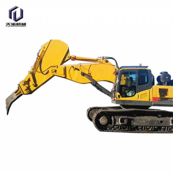挖掘機巖石臂也稱鷹嘴臂、超級勾是風化石、頁巖石、紅沙巖等挖掘破碎的利器,比傳統(tǒng)的破碎錘作業(yè),具有高 效率低損耗的好處,相比傳統(tǒng)的爆破作業(yè)而言作業(yè)效率更高,破碎成本更低,維護成本也很低。因為整體的臂進行縮短和內(nèi)部填充加重,像 45 噸左右的機型大小臂可達 16-17 噸,能夠很大程度上面增加了挖掘機的挖掘力度,能夠克服更加惡劣的工作環(huán)境。